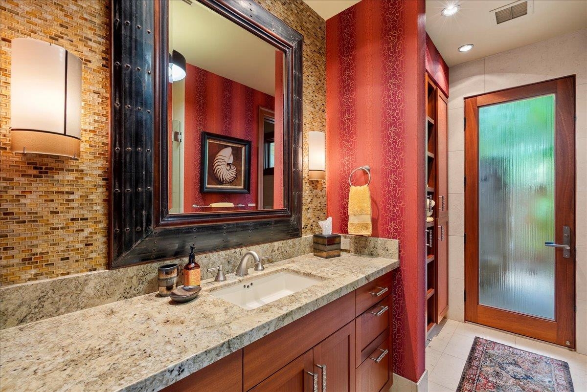One-of-a-Kind Keawakapu Beachfront Estate located in one of Maui's most sought-after neighborhoods, offering an unparalleled combination of oceanfront living, resort-style amenities, and timeless island design. This exceptional property features a spacious main home, a three-car garage, and a separate guest home, creating an ideal setting for multigenerational living, hosting, or a private retreat compound. Designed for unforgettable gatherings, the estate showcases multiple indoor and outdoor living areas that flow seamlessly to an incredible pool with slide, hot tub, peaceful waterfalls, and a dramatic rock grotto. A large lawn fronts the beach, providing space for play, entertaining, or relaxing to the sound of the waves. Inside, a unique basement level becomes the ultimate hangout, complemented by game room with a custom Koa wood bar , an in-home gym, crafting room, and an extra guest suite with full bath. Tropical landscape, sauna, and multiple outdoor showers are onsite for a true resort-style experience. The chef's kitchen is a standout, featuring Sepalle wood detailing, Labradorite granite countertops, and thoughtful finishes that blend warmth and sophistication. The spa-like primary suite feels like a private retreat, with an amazing bathroom boasting a floating tub, private sundeck, and stunning Haleakala views. Throughout the property, incredible details and textures create a custom, curated feel, making this legacy beachfront estate a rare and irreplaceable offering on Maui.